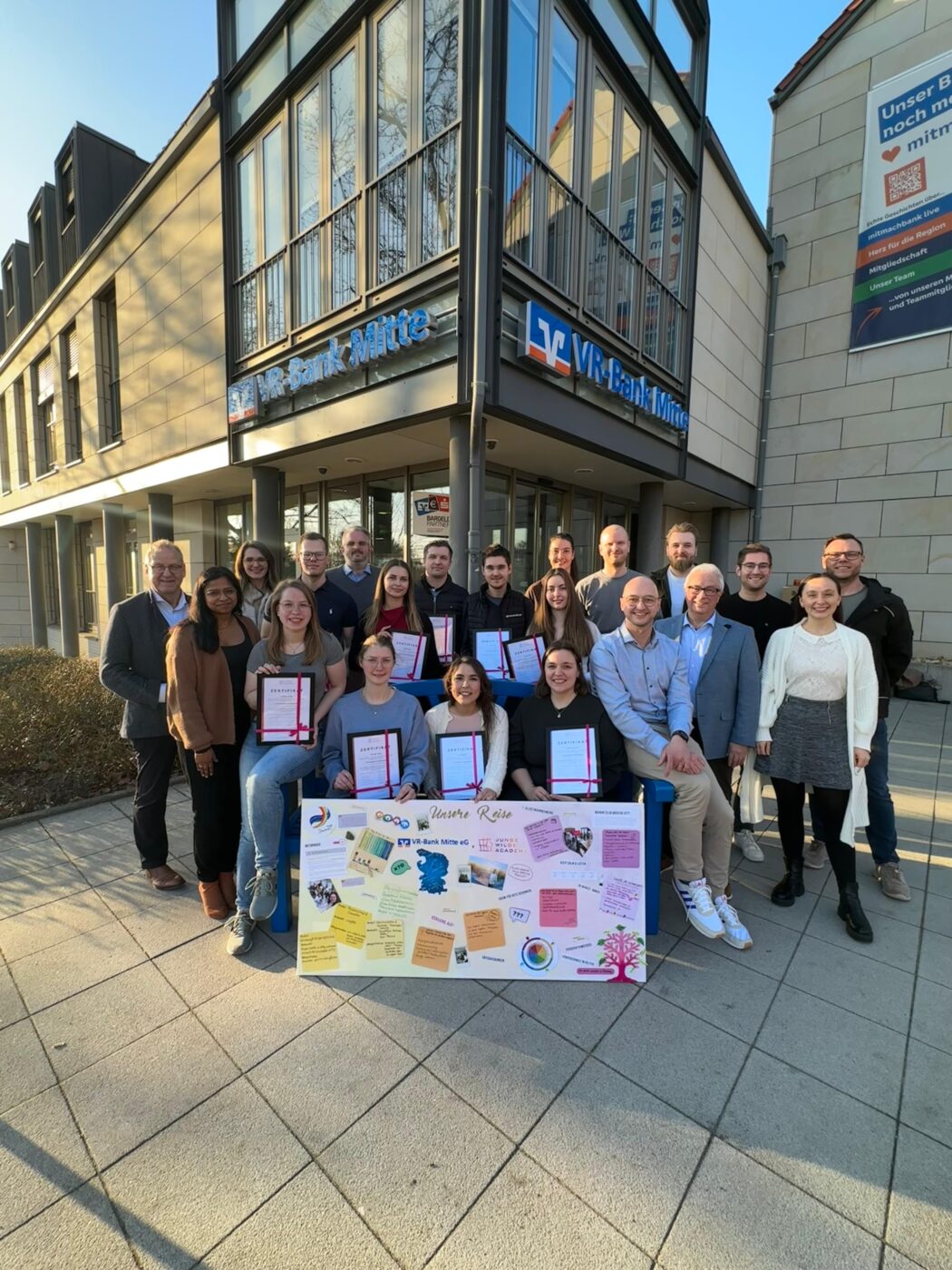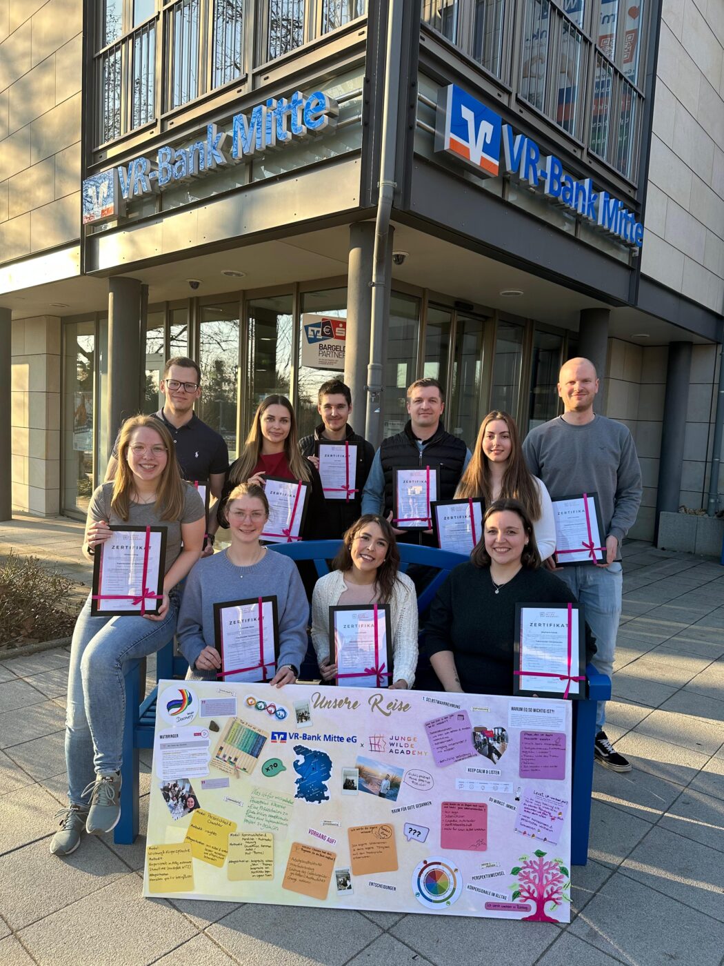 „Wir, die Jungen Wilden, können uns nur für die tolle Zusammenarbeit mit der VR Bank Mitte bedanken. Über 22 Monate durften wir die Nachwuchstalente begleiten und erleben, wie sie Schritt für Schritt gewachsen sind und mehr Verantwortung übernommen haben. Für uns ist genau das der Kern: Wenn alle Beteiligten Entwicklung wirklich ernst nehmen, entsteht etwas, das weit über einzelne Seminare hinausgeht. Vielen Dank für das Vertrauen und diese gemeinsame Reise.„